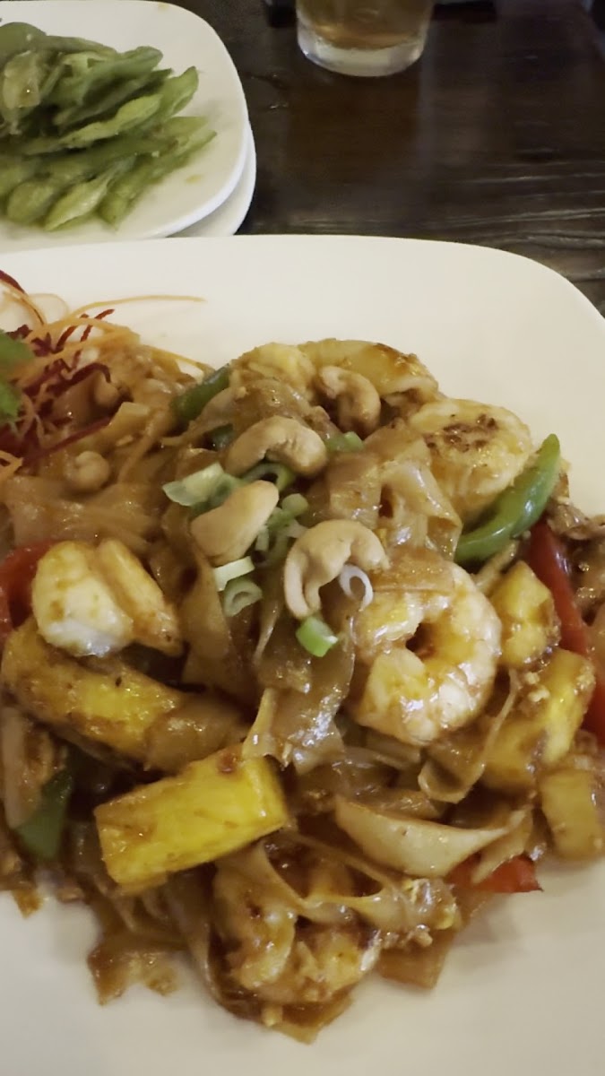 The food was absolutely delicious. The green curry was on point. The drunken noodles are amazing, the perfect amount of spice. The blue crab rangoon is the best. I made it just in time for the last 30 minutes of happy hour. The drinks were mixed perfectly. The bartender was also my waiter and server during the meal. He did an awesome job wearing all these different hats. The hostess that greeted us could use a little more training. Overall, this was a great dining experience. SN: There was a bug in one of my cocktails. The bartender handled it immediately and professionally. This incident did not take away from my fantastic experience here.