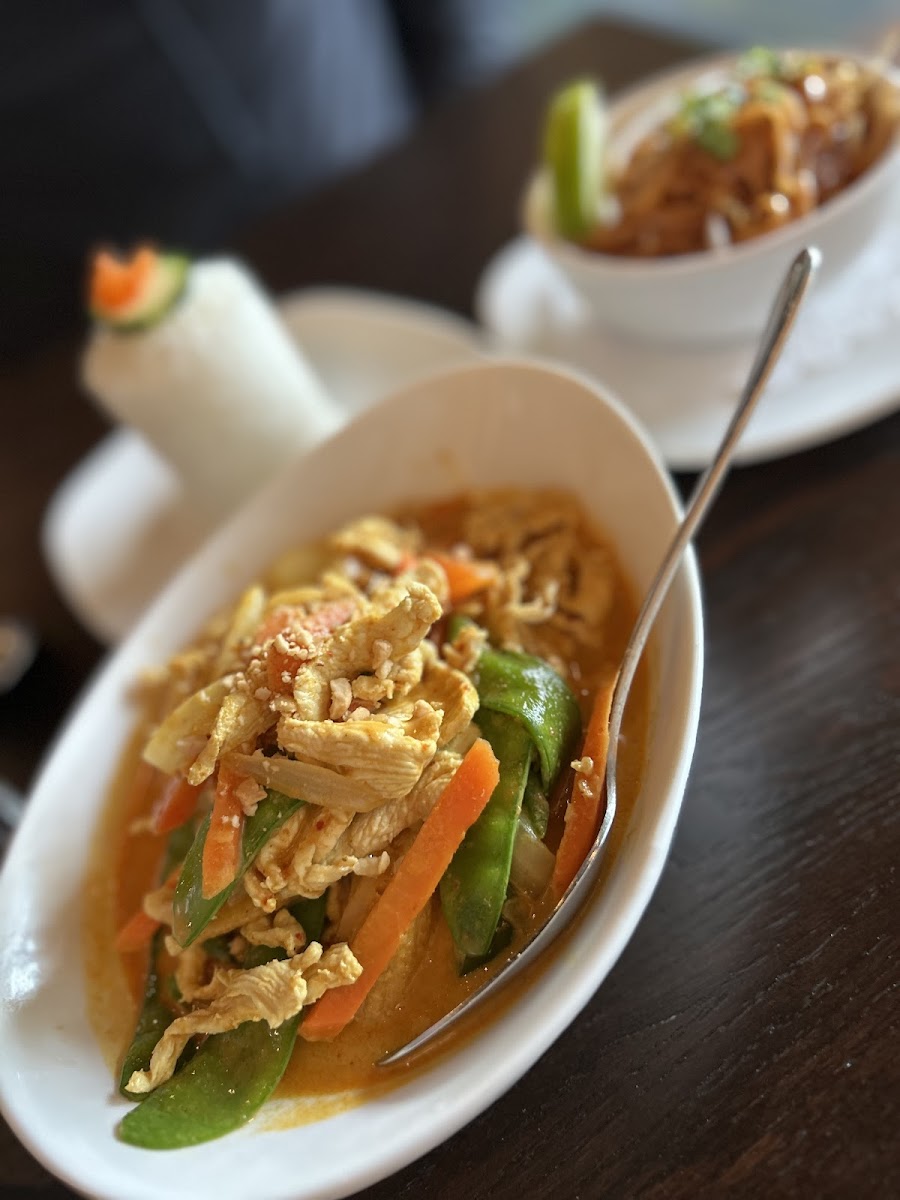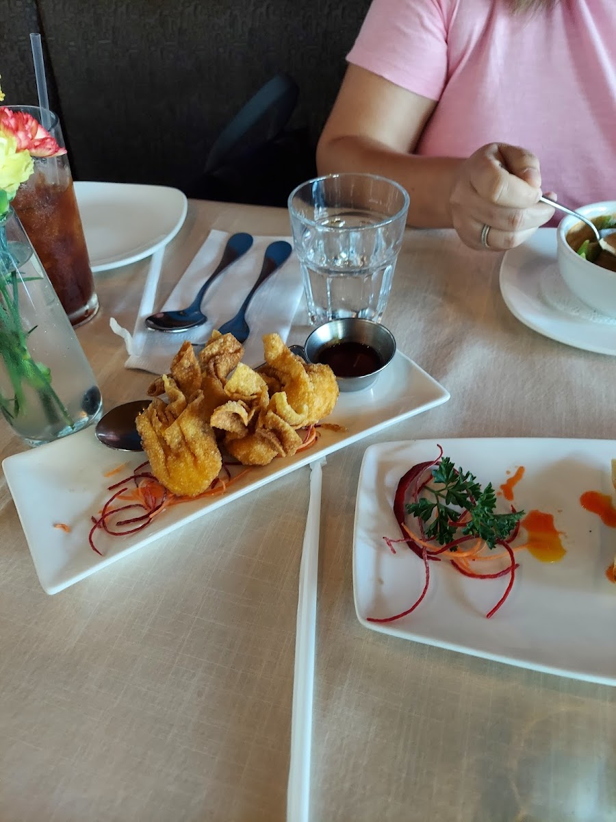 A wonderful Thai experience. The food was excellent. We had Crab Rangoon and shrimp potstickers for starters. My Daughter had Pad Thai I had Thai chicken with rice. We both had the most delicious soup with a coconut milk base. Everything was outstanding. The service as well.