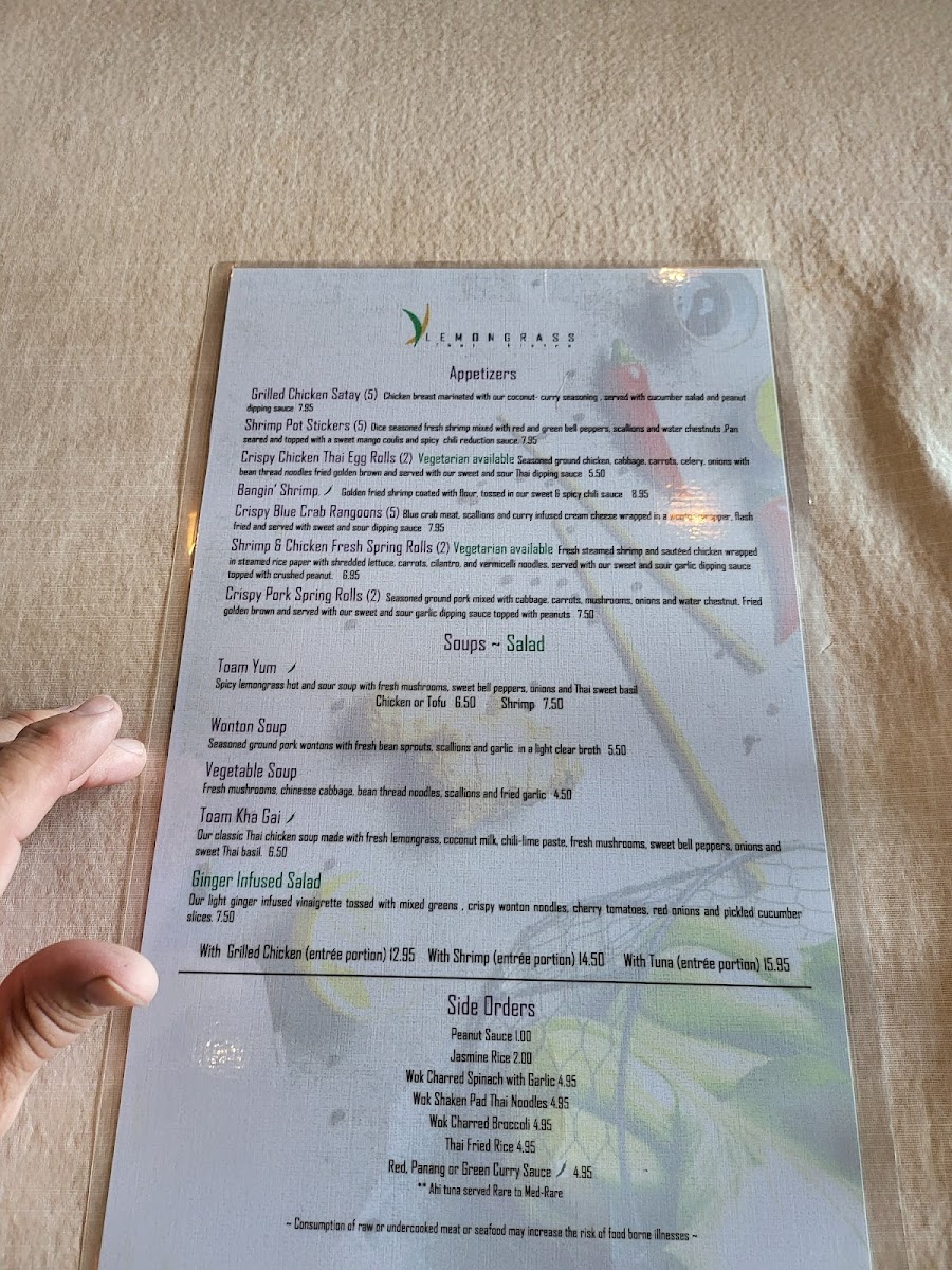 Chicken Satay (2) Shrimp pot sticker (2) Crispy Egg Rolls (2) Blue crab Rangoon (2) Shrimp&Chicken fresh roll (1)