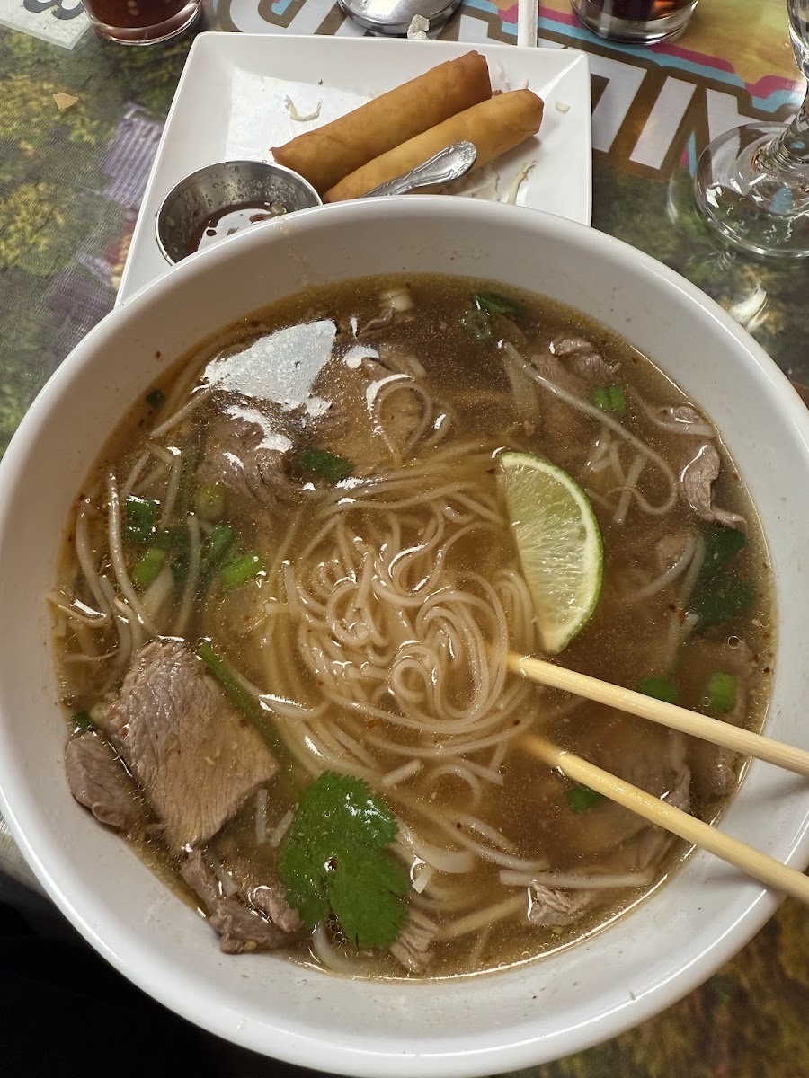 Our whole family loves Mama Pin’s! If eating in, the Pho is amazing. We also love the fresh spring rolls and cashew nut dish.