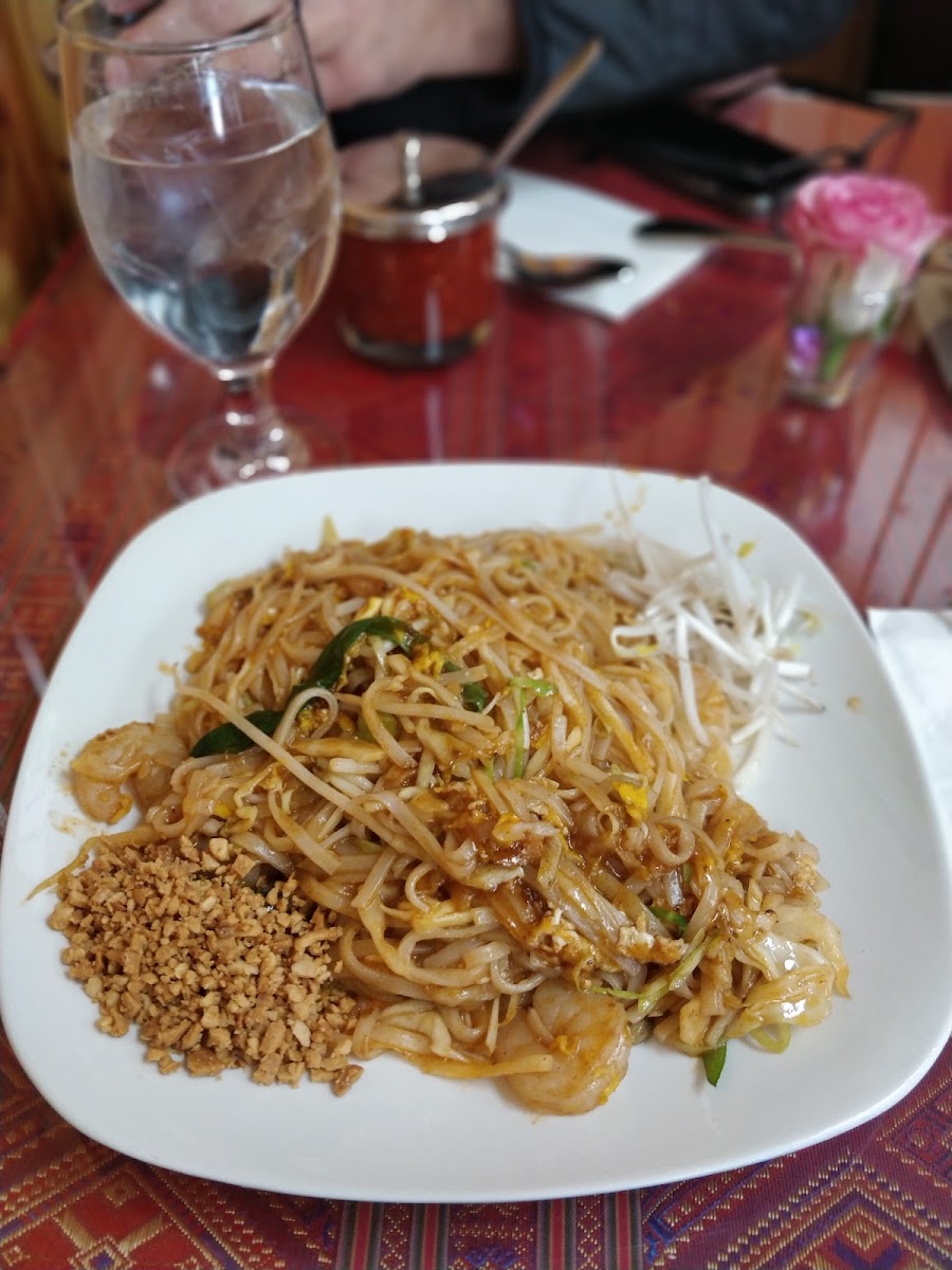 Delicious food, quick service, and always friendly staff. Im a local and have been here over 30 times. My favorites are the beef Pho, the Yellow Curry, Pad kee mow (drunken noodles), Tom kha kai, and appetizers: wings, egg rolls, and fresh spring rolls. All of the curries/soups are great.Pad Thai was kinda dry when I ordered it. I also wasn't a fan of the beef and broccoli because it made my stomach hurt. But Ive eaten here multiples days in a row for their curries, soups, and noodles! One of my favorite places if you know what to order.