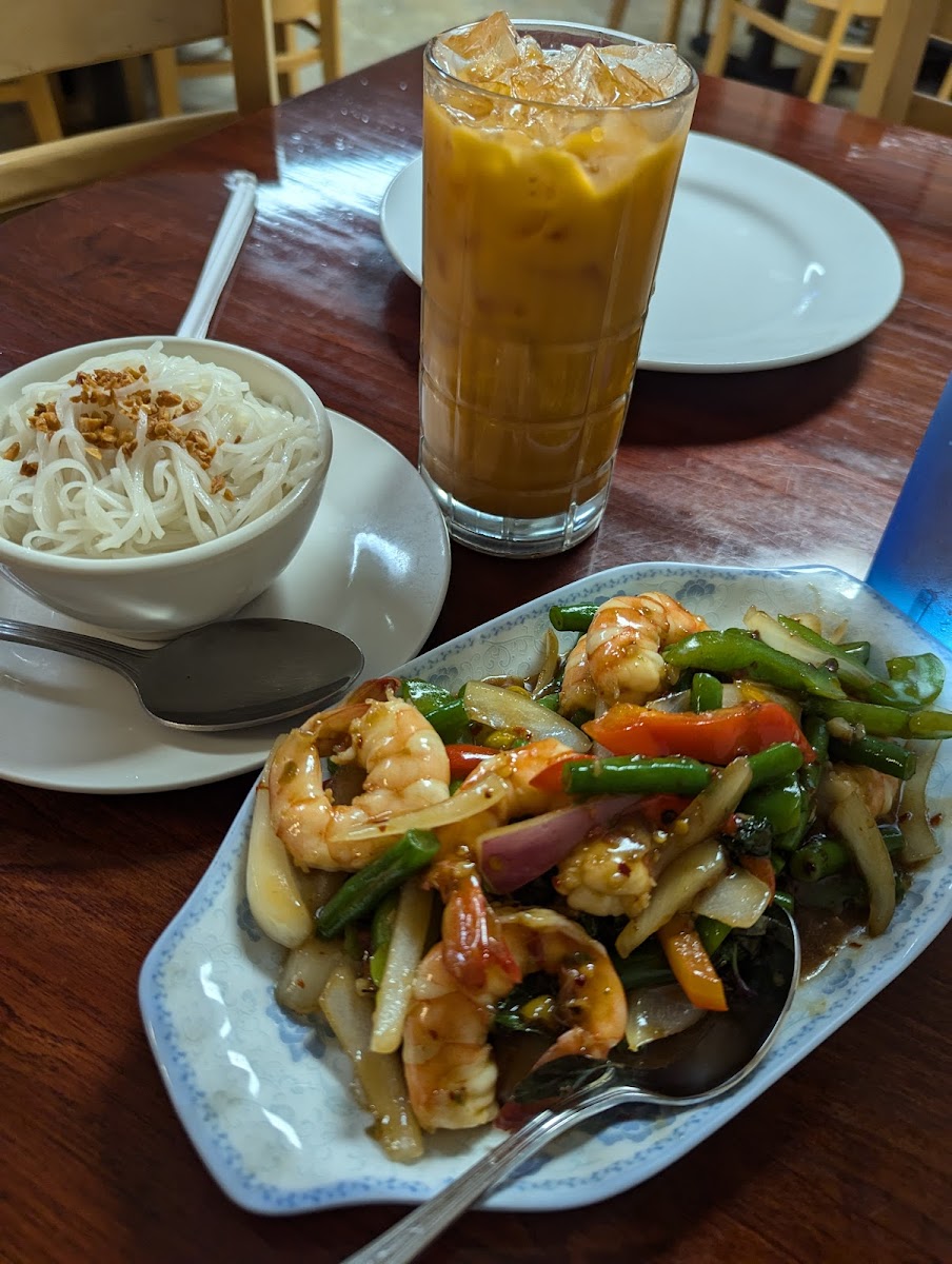 Stopped in from out of town and we loved the food. We had chicken satay, #31 & #41. We also got the Thai tea. Everything was fresh and delicious. Service was prompt and our waiter was very sweet. We will definitely make the drive from SETX to eat again.