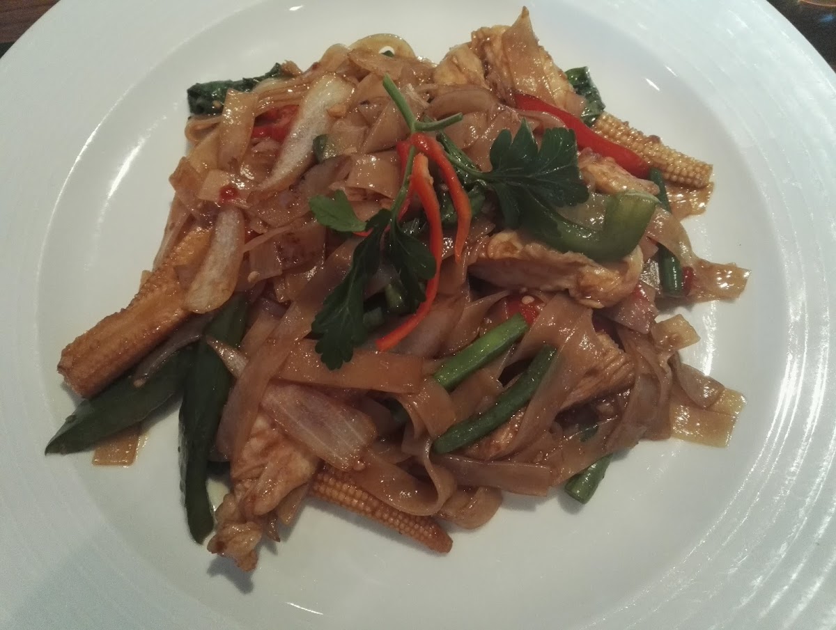 Great food, nice service. The chicken satay is a class above anything u usually get, silky and smooth and big chunks of chicken. The pad me with prawns also v.good. but highlight was the battered chicken in spicy sauce dish that i cant for the life of me remember the name ofm