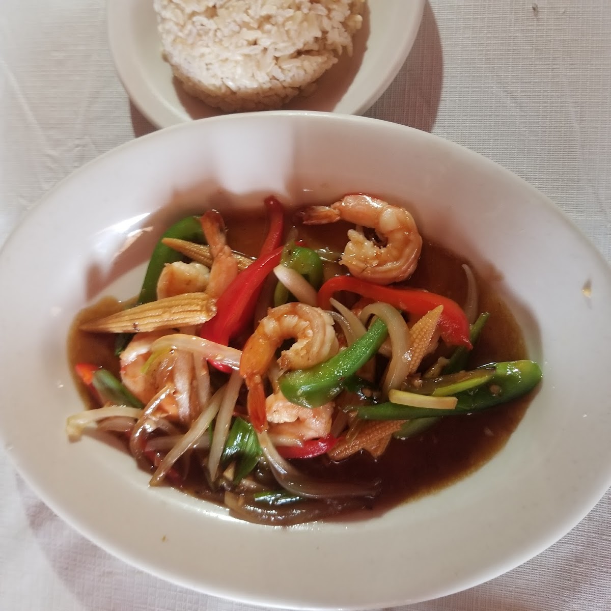 It was our first time here, we enjoyed the service and the food. They only have bottled water. And only one free refill on the sweet tea. The golden purses were pretty good (it was my first time). The fried dumplings were very yummy with the soy sauce. My son enjoyed the chicken fried rice (no veggies) and I had the seafood (shrimp, scallops and fish) yellow curry (this one comes with (pineapple) it was good although not really spicy. The Thai tea was tasty!