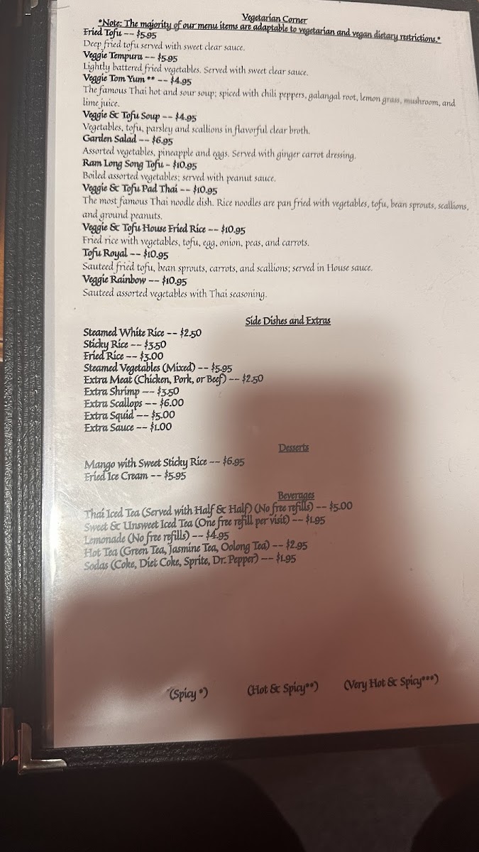 The most famous Thai noodle dish. Rice noodles are pan fried with vegetables, tofu, bean sprouts, scallions, and ground peanuts.