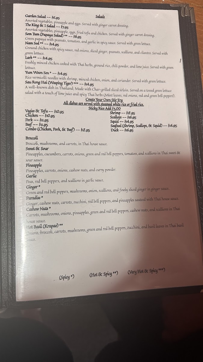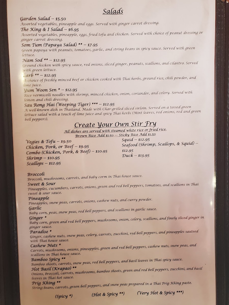 Ginger, cashew nuts, carrots, zucchini, red bell peppers, and pineapples sauteed with Thai house sauce. Spicy.