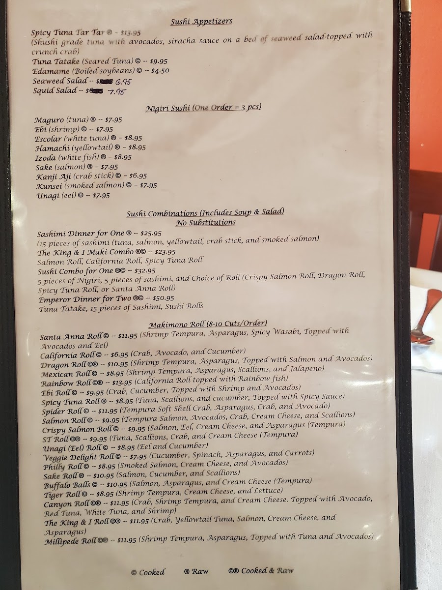 Salmon roll, California roll, spicy tuna roll. Raw and cooked.