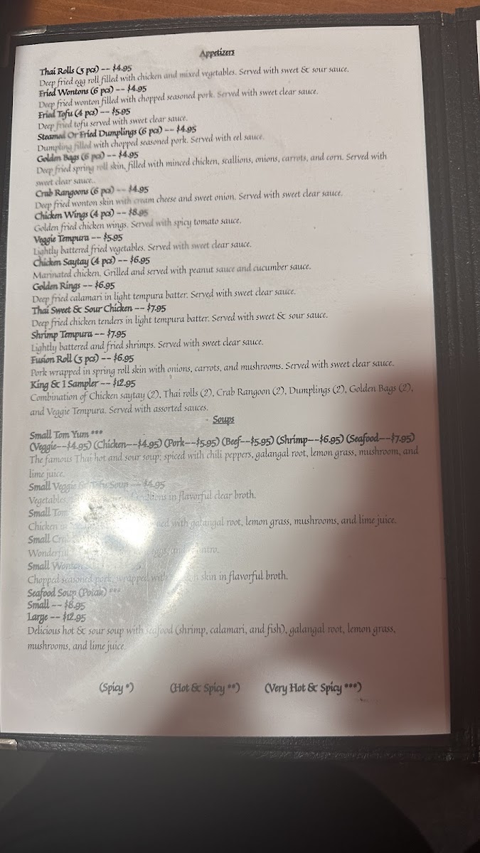 The famous Thai hot and sour soup; spiced with chili peppers, galangal root, lemon grass, mushroom, and lime juice. Hot and spicy.