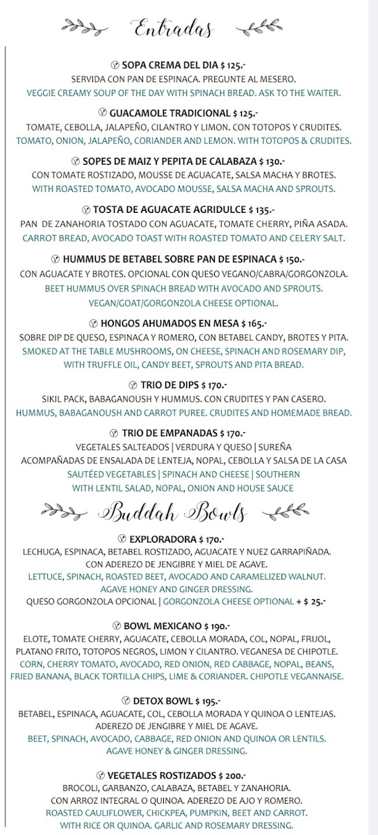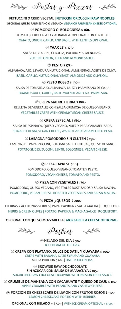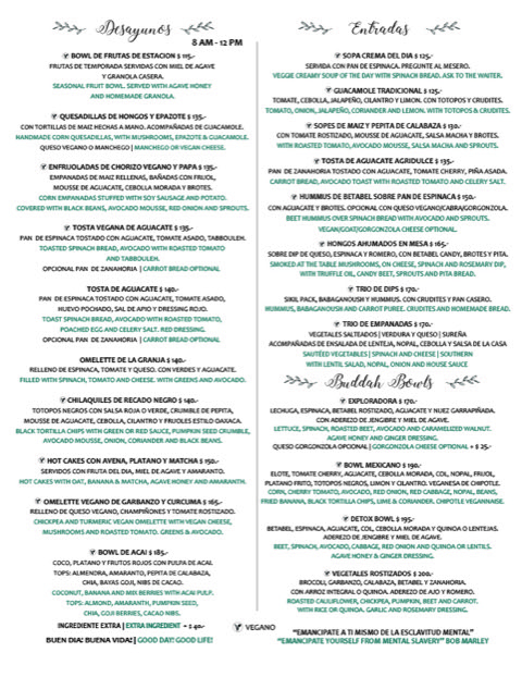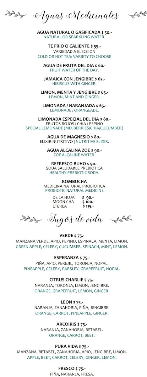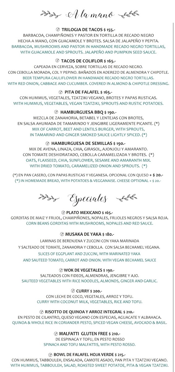 La Hoja Verde Menu