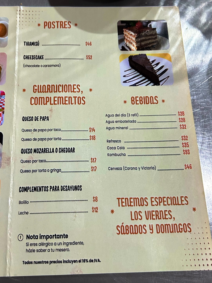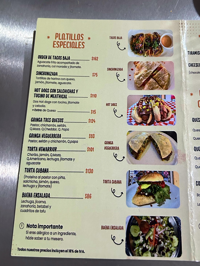 Veguerrero Menu