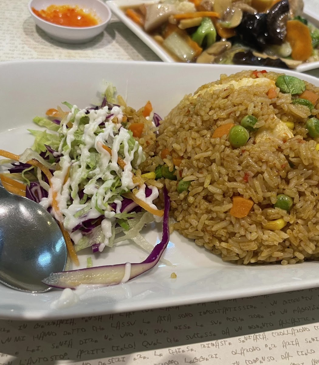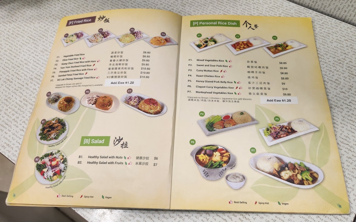 Update 8 Nov 24 Brightened atmosphere now with new lighting. Food just as good. Staff seem happier too. Bought some snacks from the counter - the Pumpkin Cracker from Malaysia is superb $4 and the Monkey Head Mushroom floss from Taiwan $7 is good too (but I couldn’t see the use by date on the packaging) Update 2 Jan 24 Fantastic dinner with “fish”curry and “chicken” rice (they ran out of the chicken rice but we totally enjoyed the unpolished rice option!) There was a notice to seek support for price increase due to rental increase. The shop lease expires Nov 24. Support! Support!! I hope they will endure and stay on! Cash, nets and paylah accepted! Update 28 Aug 23 Monday 530pm. Called to order for self pick up. When I arrived after 10 min, it was ready!!! The food is still as reliable as ever. We had for $31.60: 1. fish curry is 5/5 looks fierce but not that spicy, just spicy enough! 2. Luo Han Zhai - think it’s the best 5/5. Vege is adequately crunchy yet cooked to soak jn the delicious sauce. 3. Olive fried rice - the rice was slightly lumpy and could be dryer. Paid by pay now on-site (other options: nets or cash) 2 years ago: Can’t believe I haven’t reviews this cafe! Probably cos I don’t want people crowding the already crowded space. These guys are simply great!!!! Super reliable in quality and can eat in Aircon comfort. But there is limited seating so if u are late u can wait. Very popular dishes which run out early - chicken rice, vegetable curry (all the curry dishes are popular!)