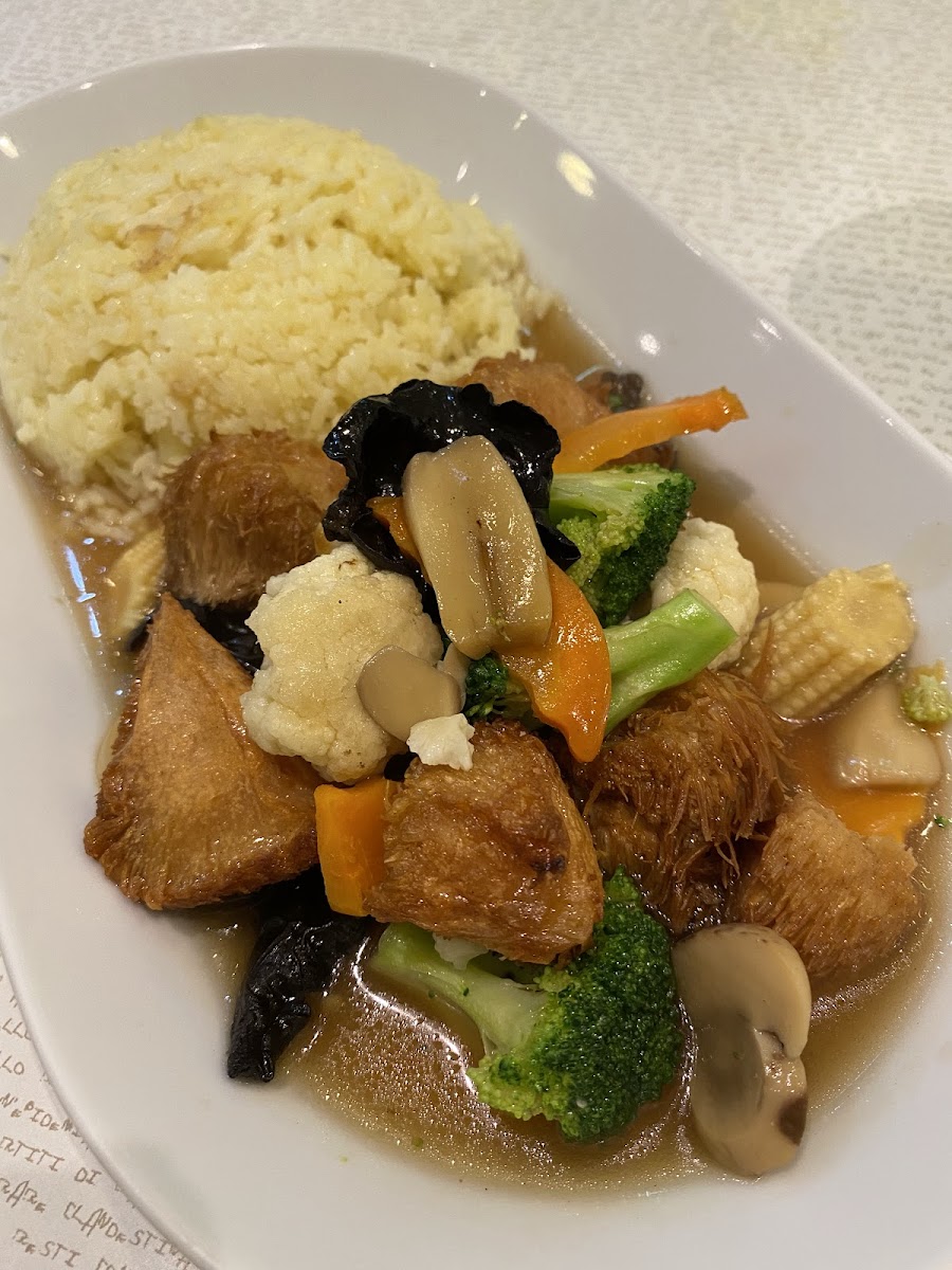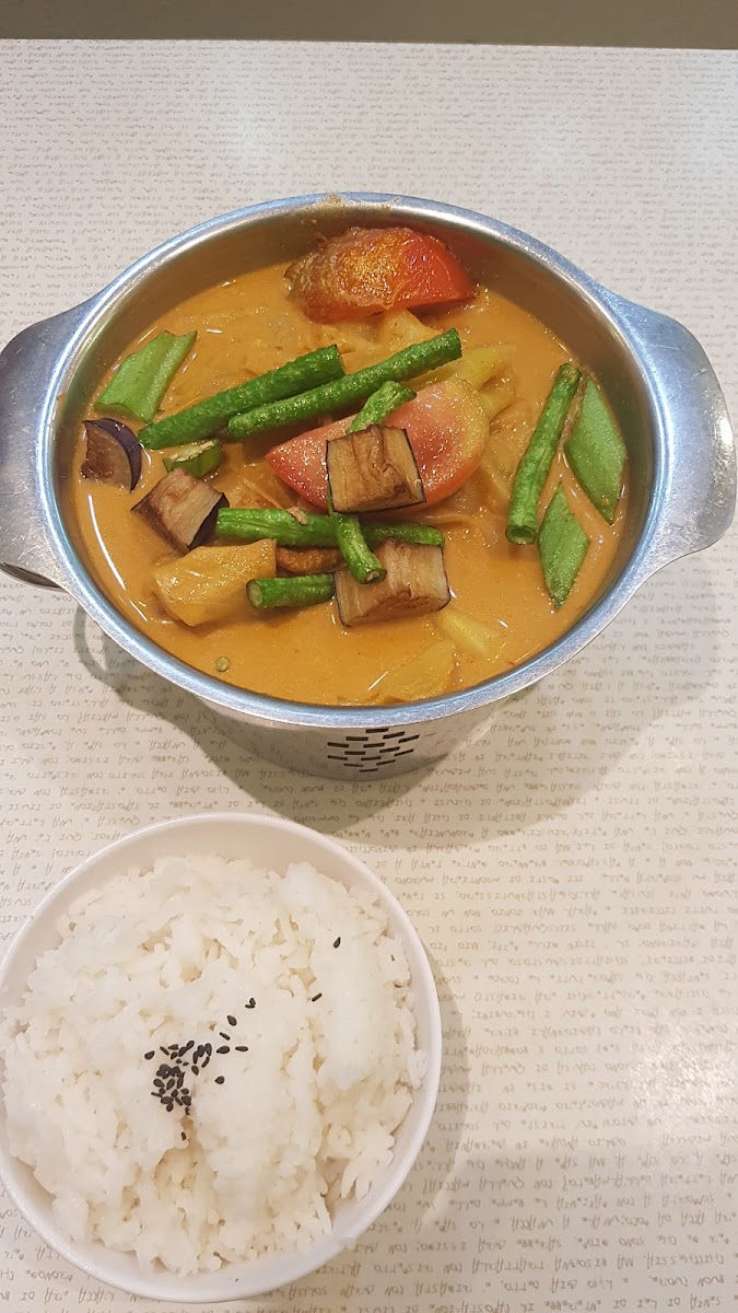 Since is 初一 today so all other vegetarian is pretty packed. Initially we were at lotus cafe at rivercourt but there is no seats available and 1 hour wait so decide to came to kovan and try our luck. This cafe is pretty cramp and you need to source for your own seats before you place order at counter(nets and cash only) no paywave, grabpay all this. Can see and sense the operation was abit chaotic today but they still manage to serve the food pretty fast. We gotten claypot curry fish and luo han zhai. Food is pretty good and not very oily and salty.