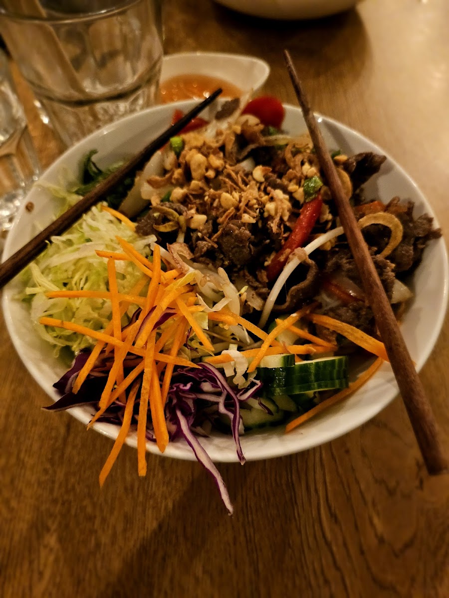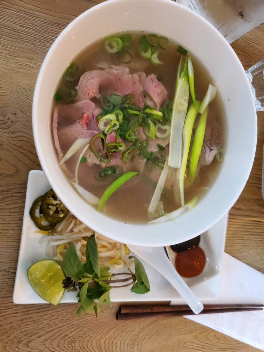 Cute spot with beautiful plants inside. The fried spring rolls were very delicious as a starter. I ordered a classic rare beef pho and was unfortunately a bit disappointed. I found the broth lacking flavour and quite oily. That being said, it could’ve been an off day and I’d be willing to try again. On the other hand my boyfriend’s chicken vermicelli bowl was very tasty so I would recommend that instead.