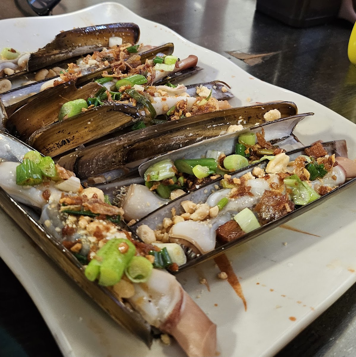 Đồ ăn hải sản, Miền Trung style, nhậu rất ngon. Có karaoke chơi thoải mái. Unbelievably affordable price, the sizes of the King Oysters came out looked stunning. The overall dishes look and taste great. Must try!! I did not mind the small and lack of table spaces, it made this place feel more cozy, warmed, and welcoming with the additional karaoke. The open vibe is truly unique to stores commonly found across southeast Asia. I will come back with more friends.