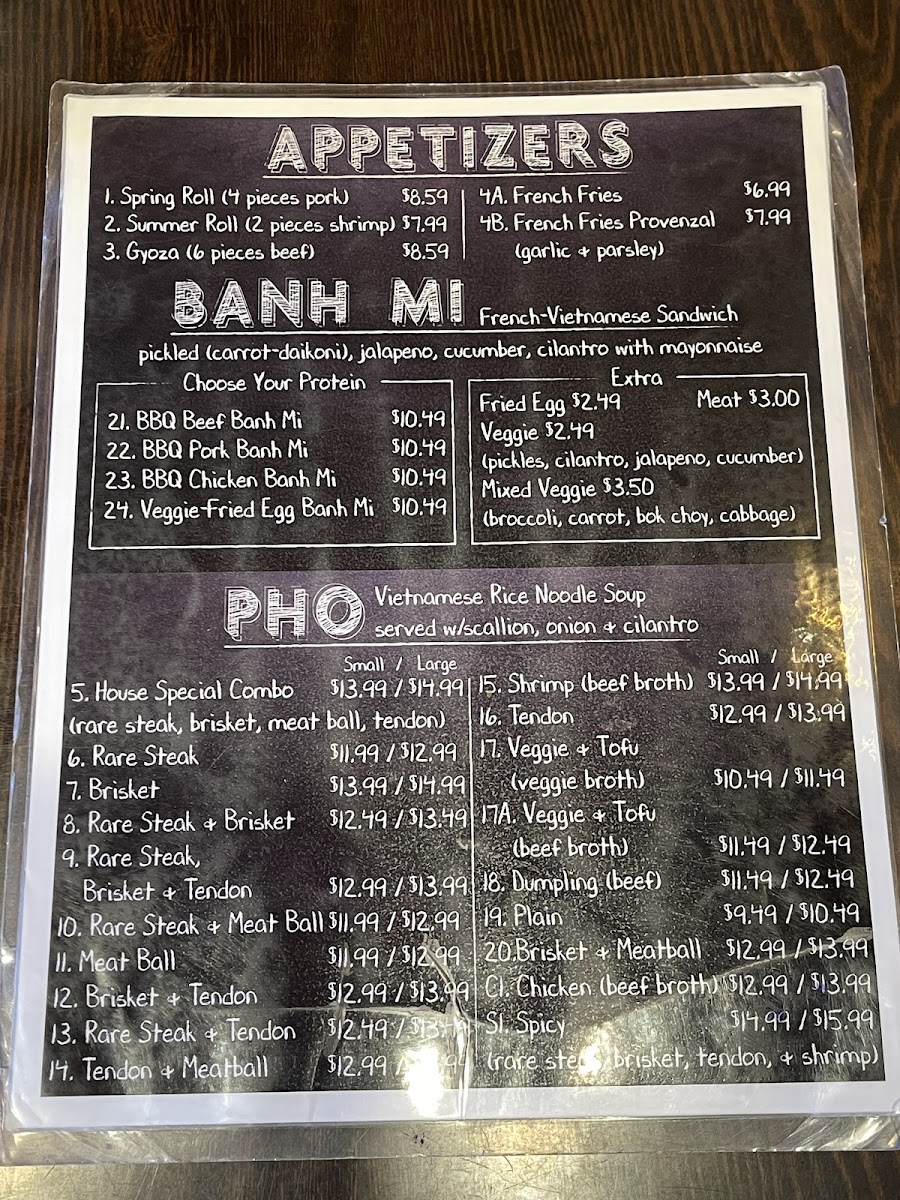 Vietnamese rice noodle soup with tendon. Available in large or small sizes.