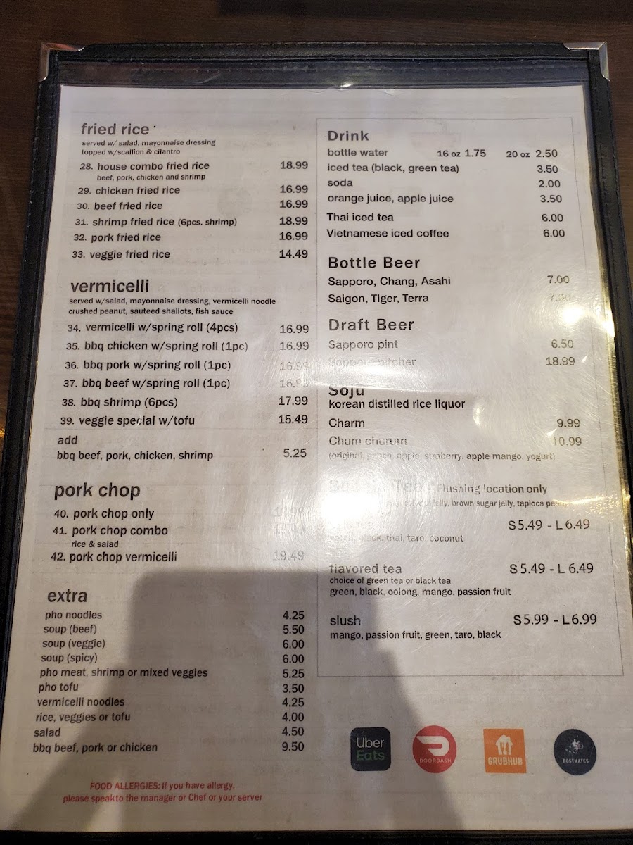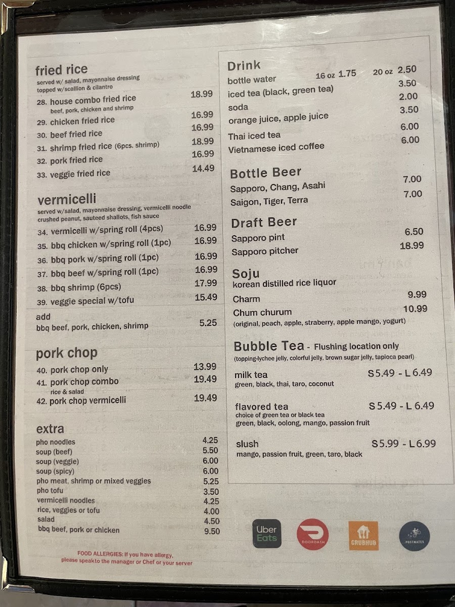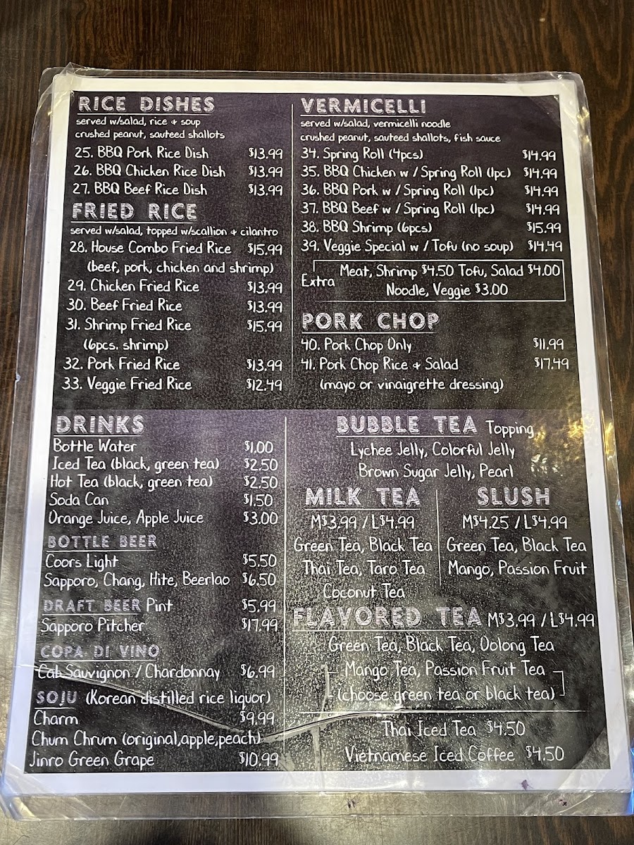 Vietnamese rice noodle soup with thin slices of rare steak. Available in large or small sizes.