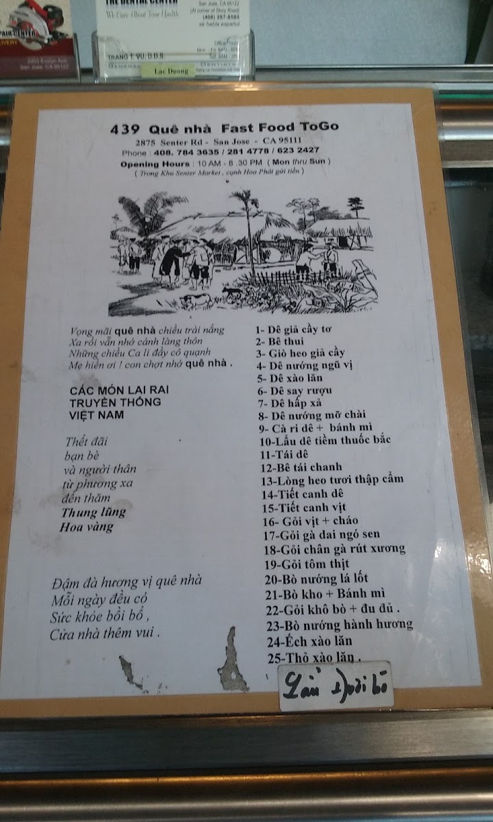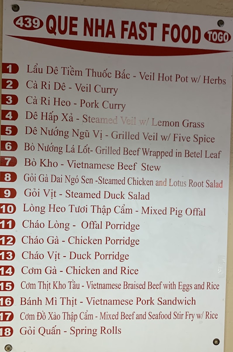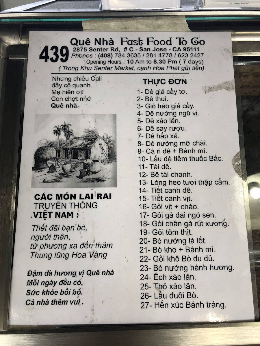 Quê Nhà Fastfood To Go Menu