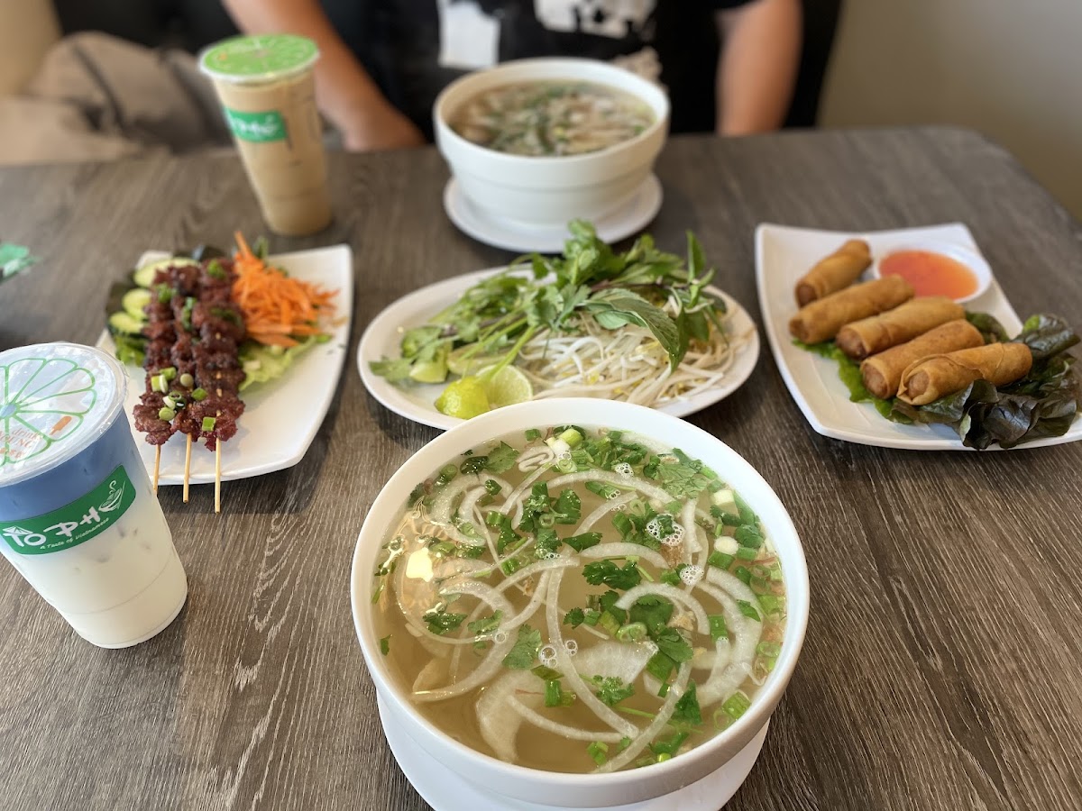 Food was GREAT. Especially the pho. 10/10 recommended. We ordered pho, shrimp spring rolls, and crab cakes. The only item I truly didn’t like was the crab cakes. It wasn’t what I expected and was chewy and soft. I wouldn’t order them again. Thai tea was delicious also. 4 stars because although the servers were nice, the service was really slow and they were pretty inattentive. It seems like they had 2 people running the floor. And quite often, they weren’t even out front.