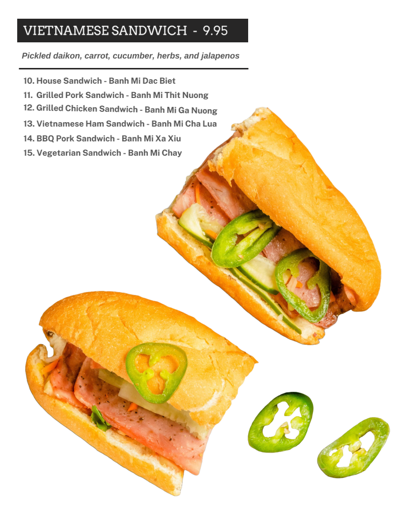 Vietnamese Ham Sandwich served with pickled daikon, carrot, cucumber, herbs and jalapenos